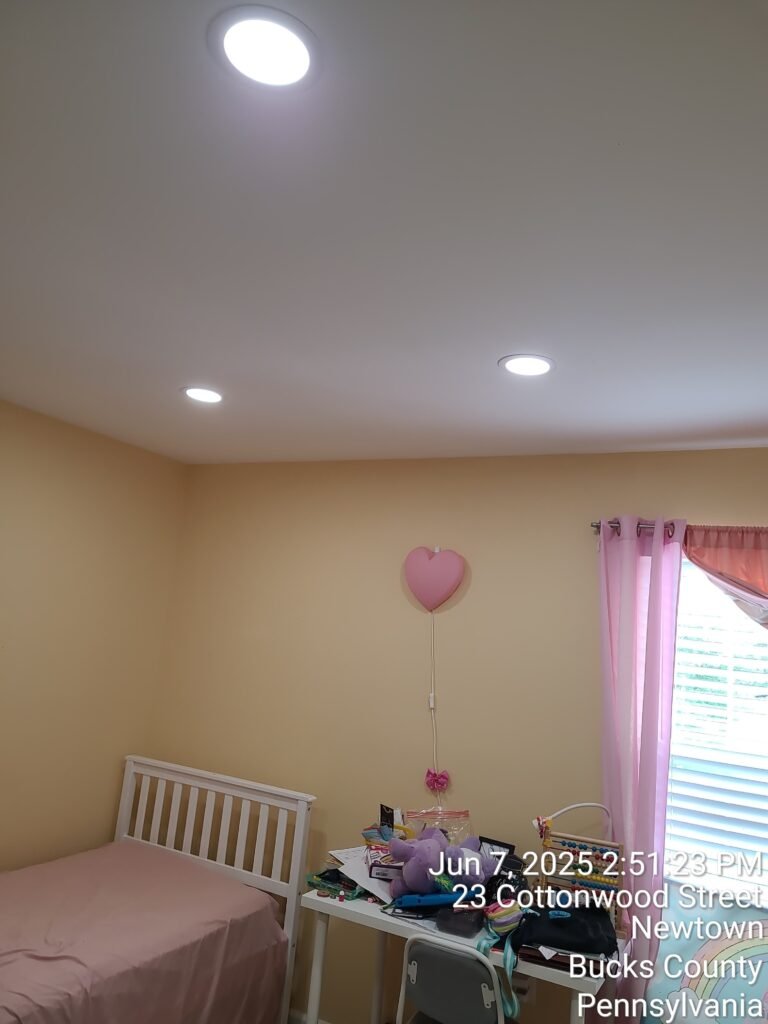 Energy-efficient LED ceiling lighting was installed in two bedrooms and the living room, providing bright, modern illumination throughout the home. The new fixtures not only enhance visibility and ambiance but also reduce energy consumption compared to traditional lighting. With a sleek design and long-lasting performance, the LED lights offer a clean, updated look while keeping utility costs low.