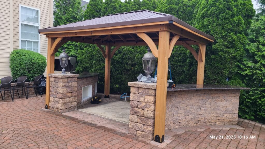 A new gazebo was professionally assembled to provide a shaded outdoor space for relaxation and gatherings. The structure adds both function and style to the yard, offering protection from the elements while enhancing the overall landscape. Sturdy construction ensures long-lasting use, making it a great addition for entertaining or enjoying the outdoors year-round.